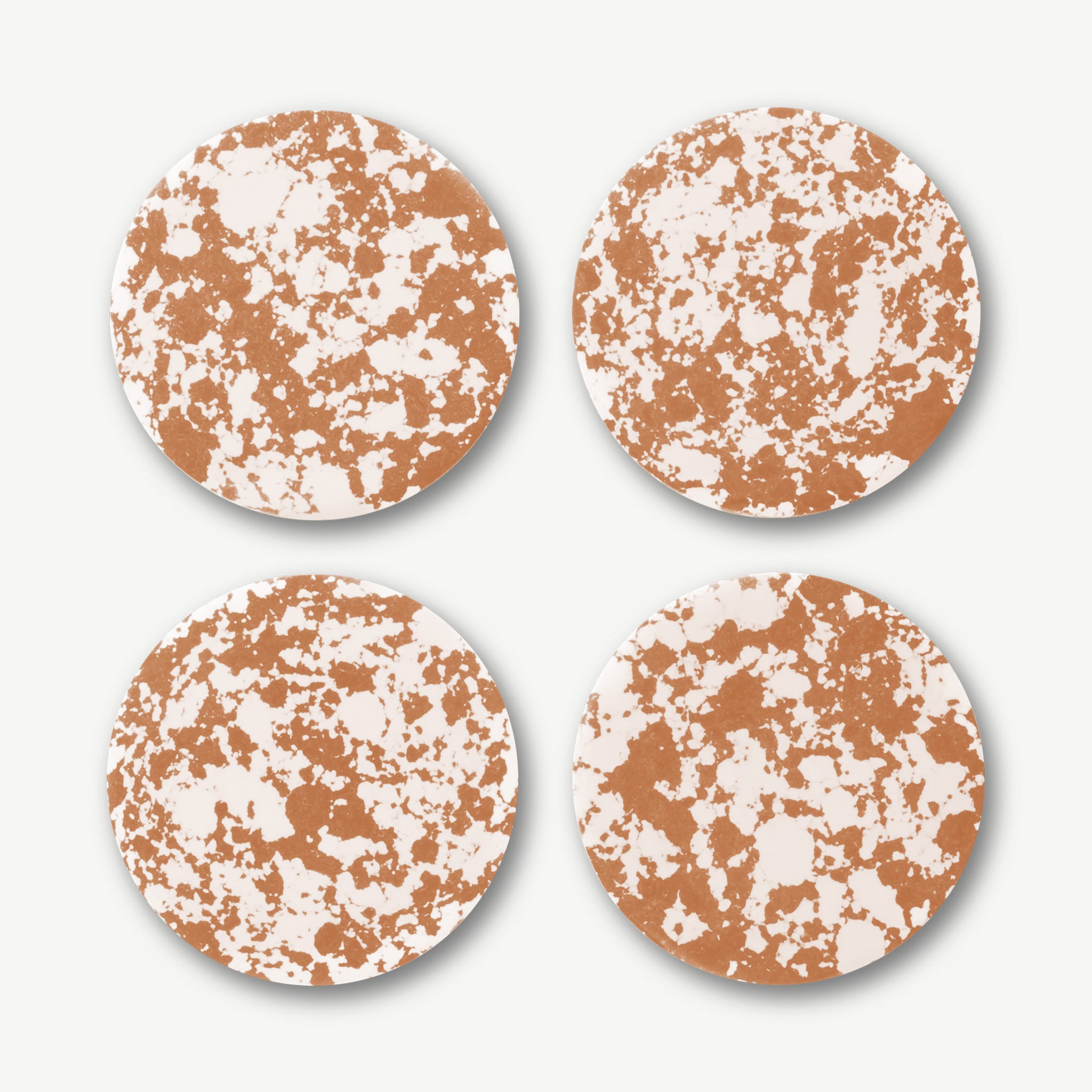 Expertly crafted by local artisans in India, these sustainable coasters are produced using an innovative process that repurposes powdered marble residue, blended with high-quality pigments. Each set of four coasters features unique, one-of-a-kind caramel and white patterns, offering a blend of artistry and function. Designed to protect surfaces while adding a stylish touch, these coasters are durable, perfect for enhancing any table setting.